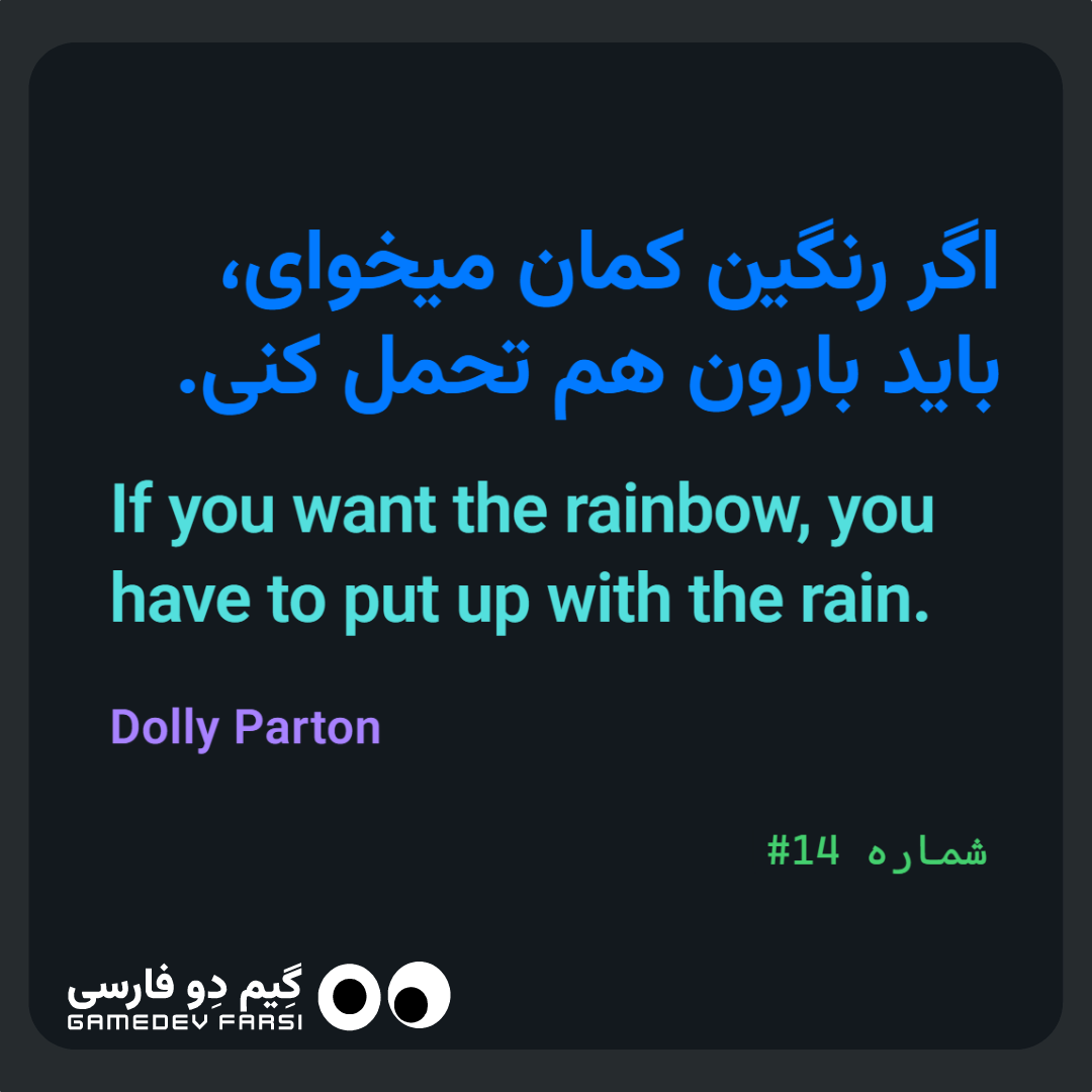 اگر رنگین کمان میخوای، باید بارون هم تحمل کنی. If you want the rainbow, you have to put up with the rain.