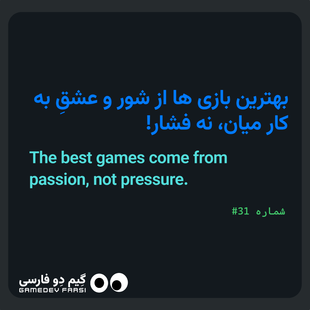 بهترین بازی ها از شور و عشقِ به کار میان، نه فشار! The best games come from passion, not pressure.