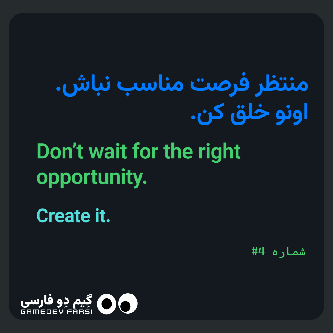 منتظر فرصت مناسب نباش. اونو خلقش کن. Don’t wait for the right opportunity. Create it.