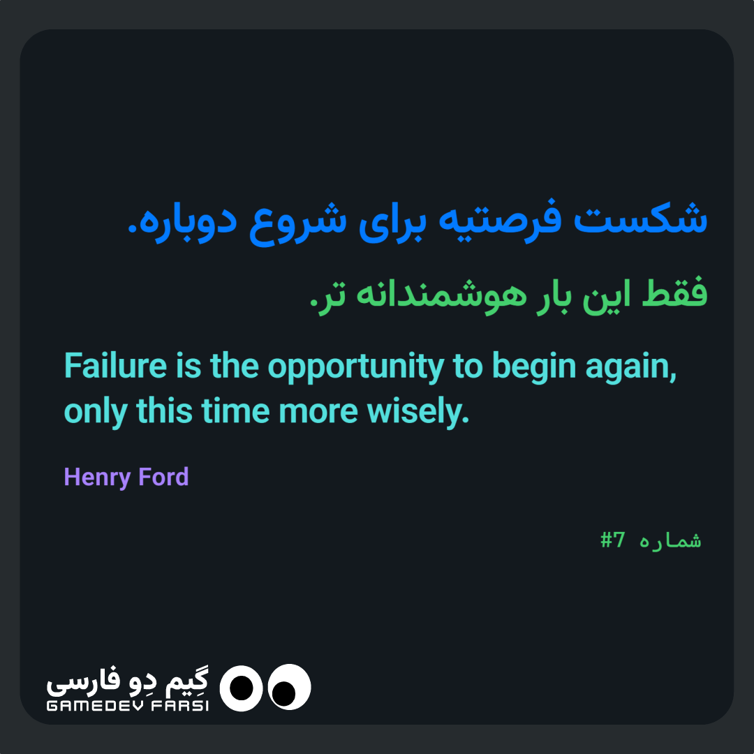 شکست فرصتیه برای شروع دوباره. فقط این بار هوشمندانه تر. Failure is the opportunity to begin again, only this time more wisely.