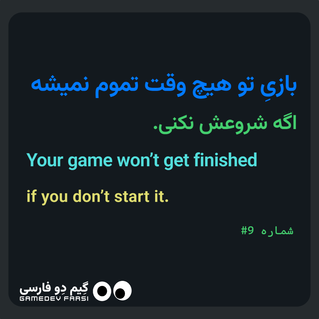 بازیِ تو هیچ وقت تموم نمیشه اگه شروعش نکنی. Your game won’t get finished if you don’t start it.